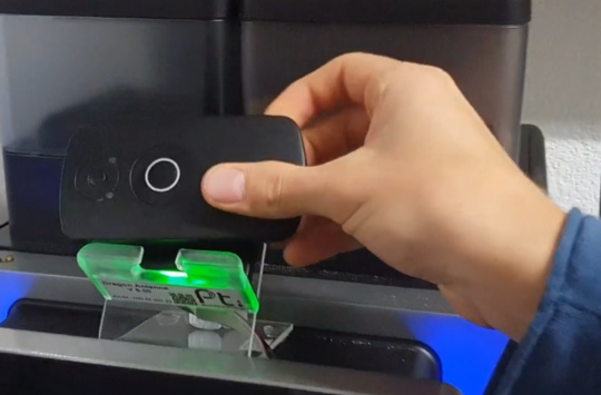 By holding the device in front of the reader antenna, data transmission starts in both directions. This includes EVADTS or transaction data, prices, etc.